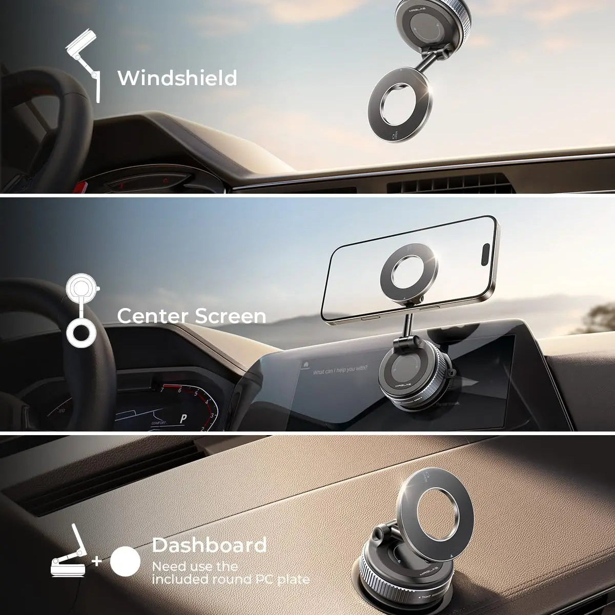 🧲 Base con ventosa de alta adherencia: Se fija con seguridad en salpicaderos, mesas, encimeras o cualquier superficie lisa.